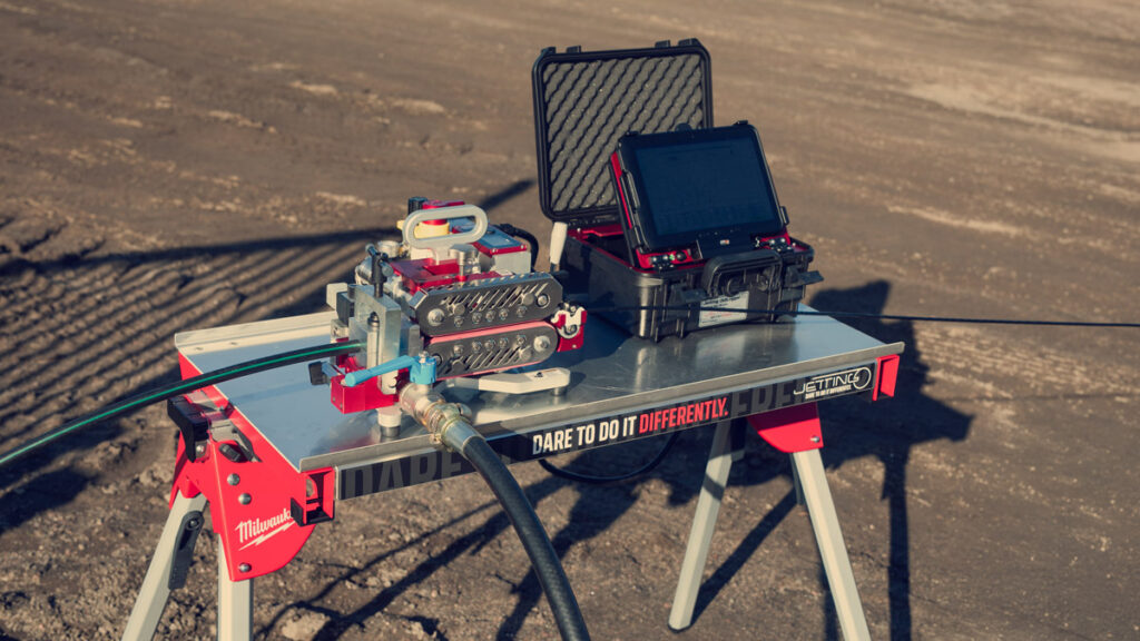 A Jetting machine uses compressed air to carry the fiber cable through the duct while pushing it forward with controlled force. The result: much faster installations, less cable stress, and longer installation distances compared to pulling.